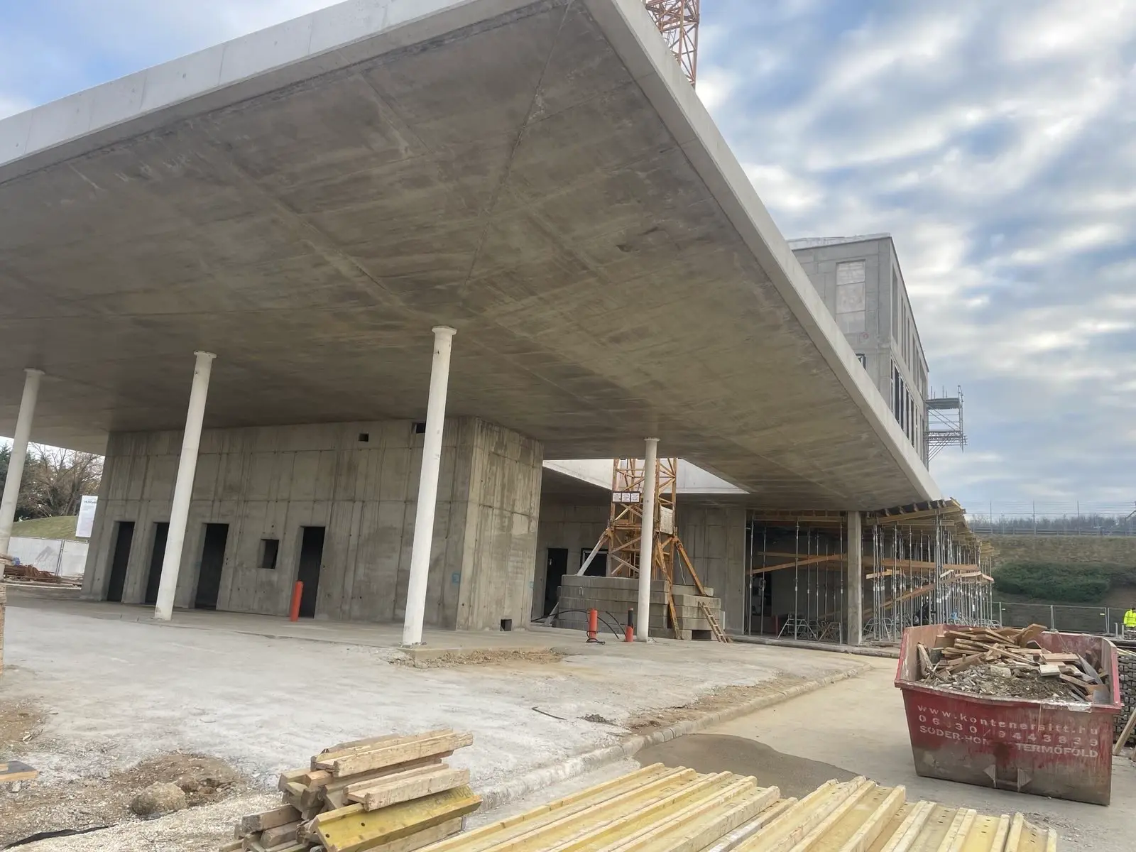 A modern oktatási intézmény szerkezetépítését végeztük el, monolit vasbeton megoldásokkal.