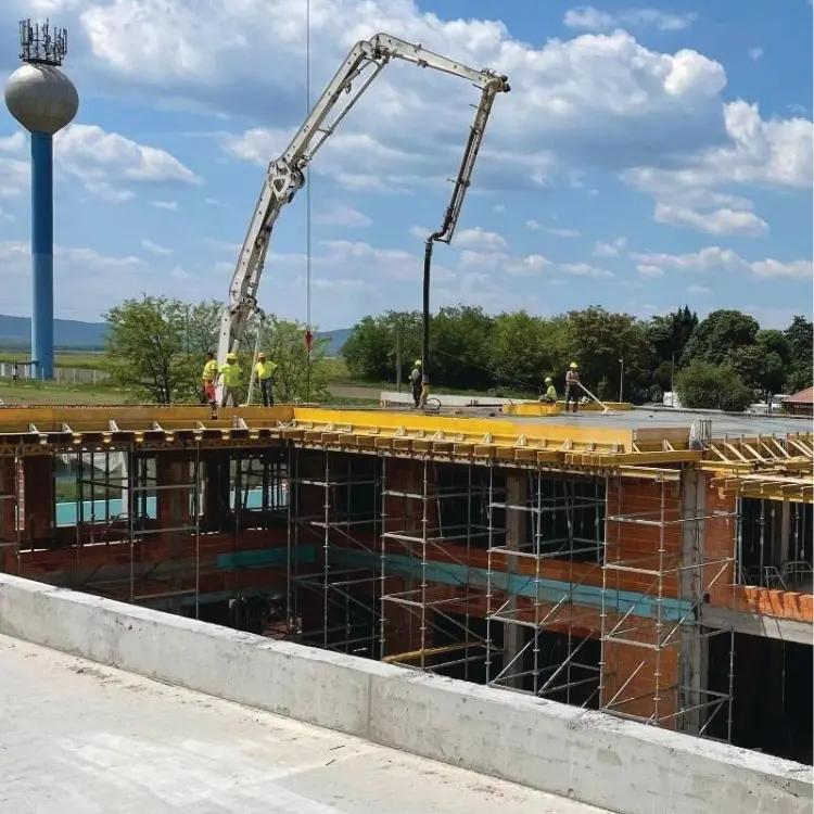 Az általános iskola bővítéséhez szükséges vasbeton szerkezetek kivitelezését végeztük.